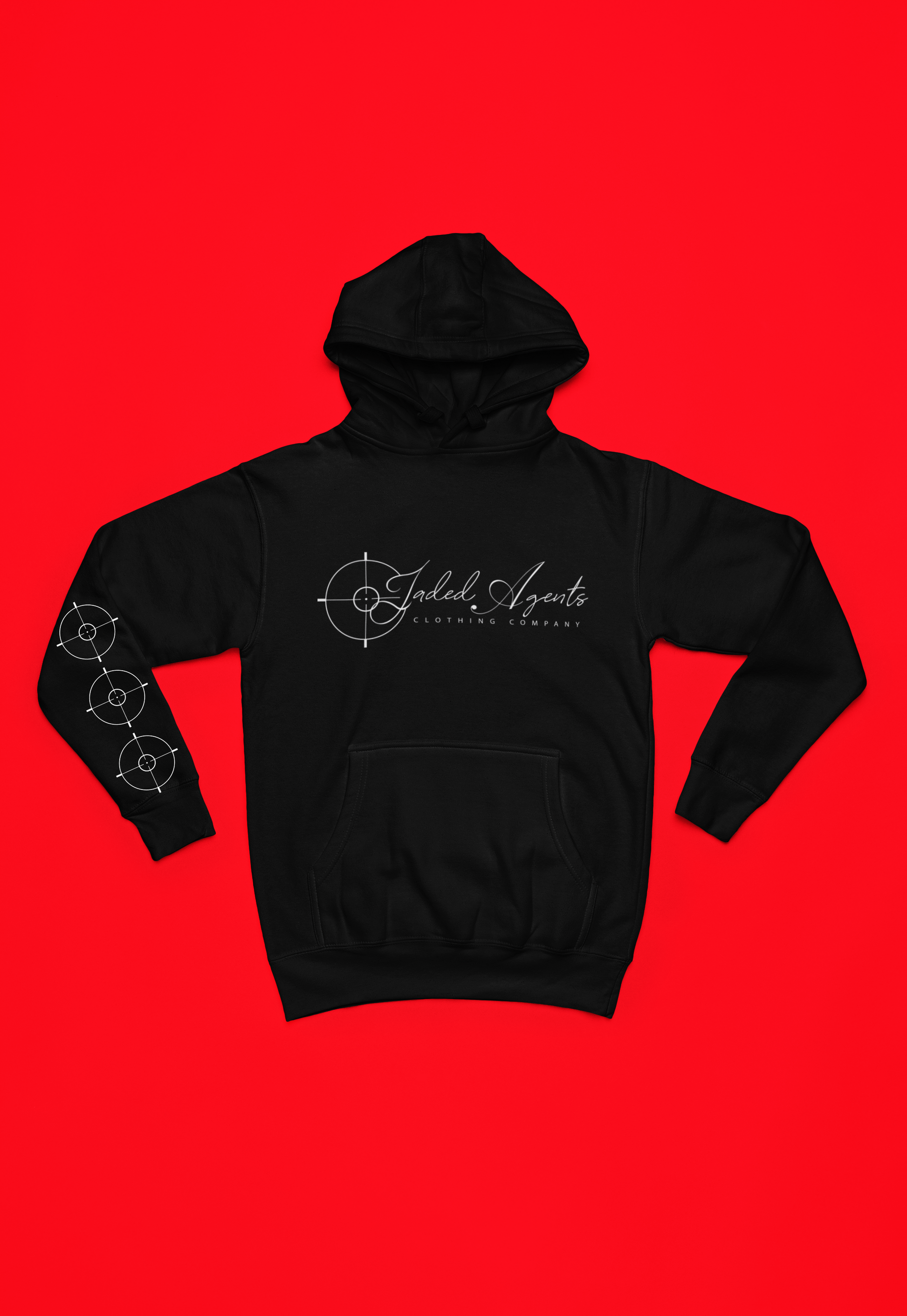 'OG Hoodie' Crafted from premium black cotton/poly blend fabric, this hoodie offers style and comfort. What sets it apart? The iconic Jaded Agents logo, proudly showcased in crisp white on the chest—a symbol of individuality. For an added touch of distinction, we have added three Jaded Agents crosshairs on the right sleeve, making a subtle yet powerful statement. The 'OG Hoodie' offers unparalleled comfort and style for any occasion and is the ultimate choice to represent the Jaded Agents brand with unmatched authenticity.