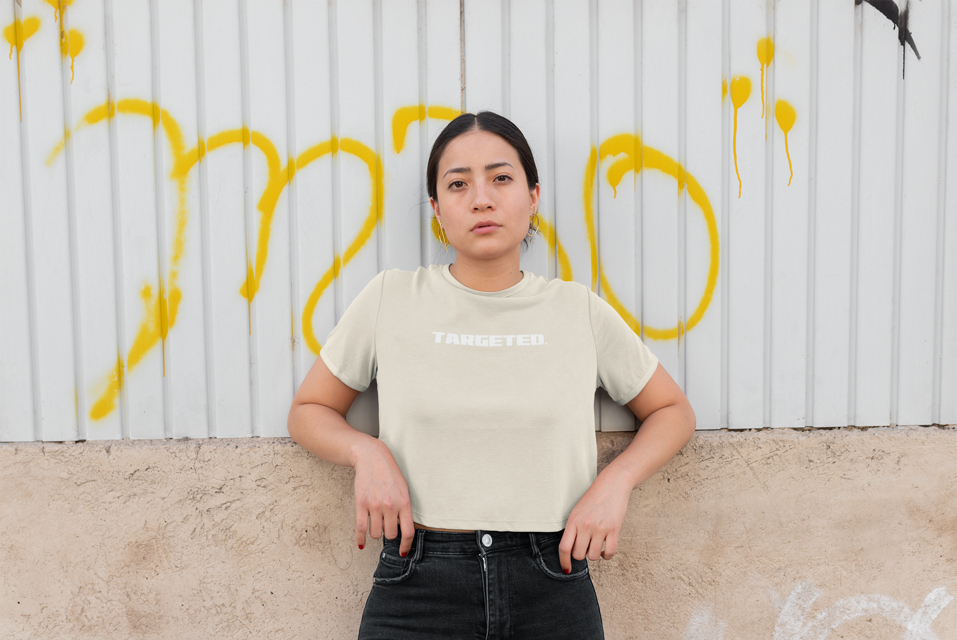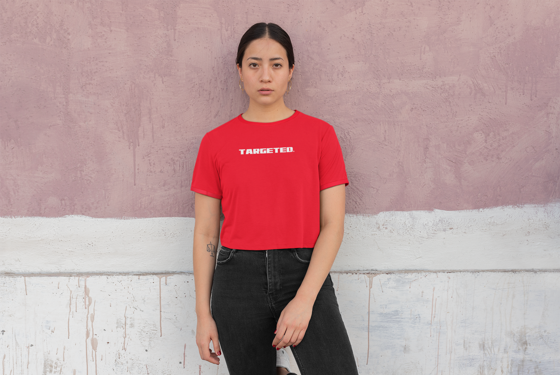 'Targeted'—A declaration of resilience in the face of societal pressures. Featuring a powerful design that resonates with the shared experience of being targeted, this shirt serves as a statement piece for those who refuse to be defined by society's labels. Let your voice be heard and stand tall in the face of adversity with this 'Targeted' relaxed boxy crop tshirt.